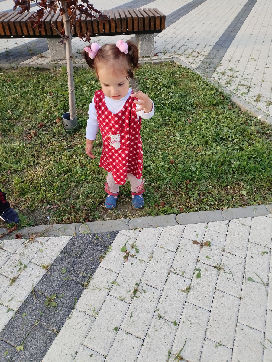 Листики красивые осенние ещё собирали и рассматривали. А Амелия положила на ладошку и начала сдувать листик, как они это на развивашках делали. Вспомнила же. Значит, занятие даром не прошло.