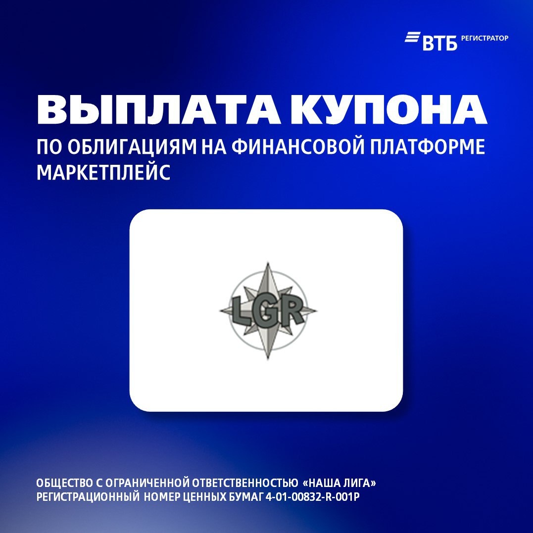 15.09.2025 ВТБ Регистратор осуществил выплату купона держателям облигаций ООО «Наша Лига» (номер выпуска 4-01-00832-R-001P