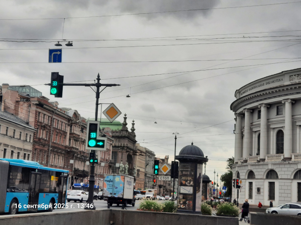 И вот это место, где был "расстрел" демонстрации (есть на этот факт разные точки зрения). Влево уходит Садовая улица, вправо Невский проспект.