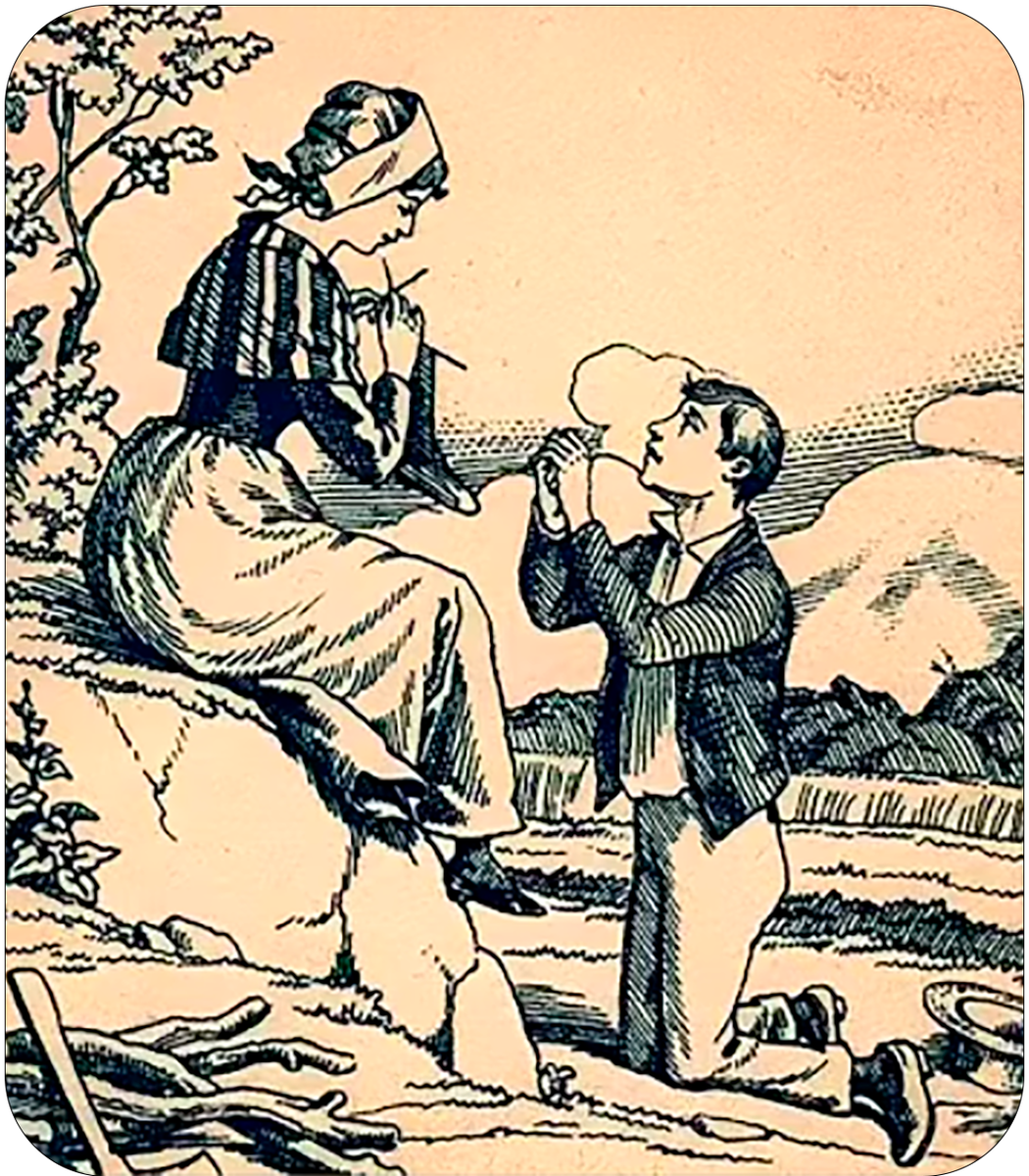 Эта картинка – просто мастер обмана. Сначала кажется, что перед тобой милая сценка: влюблённая пара где-то на природе. Парень на коленях, девушка вяжет... Романтика! Но присмотрись – за ними следят. Да не кто-нибудь, а самые настоящие «шпионы», слившиеся с пейзажем.