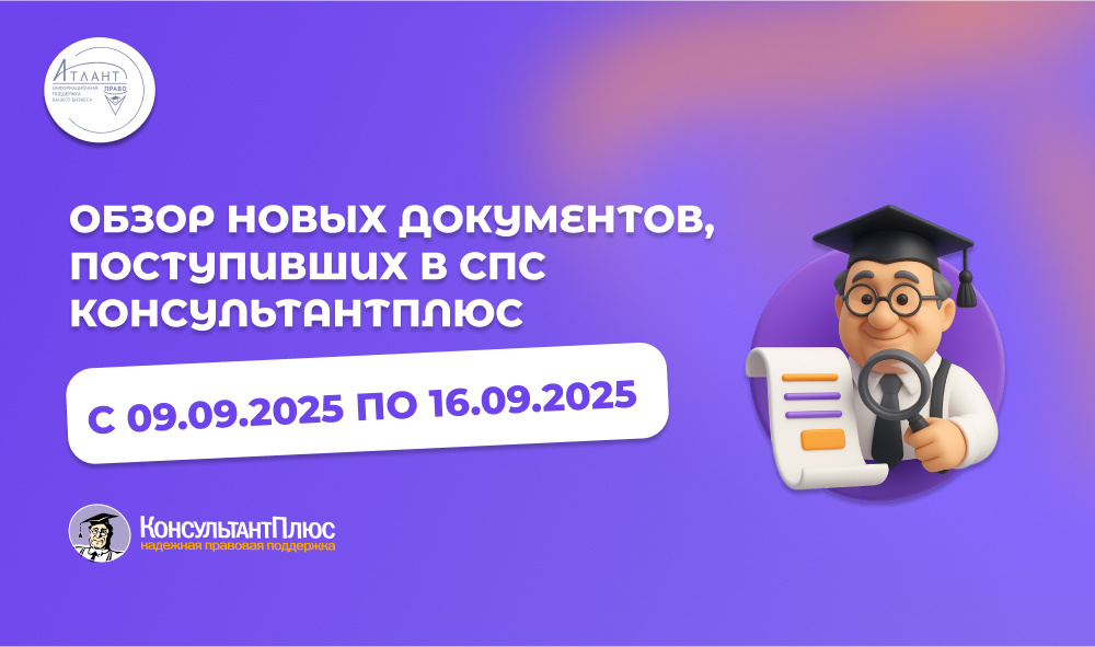 Обзор новых документов, поступивших в СПС КонсультантПлюс с 09.09.2025 по 16.09.2025