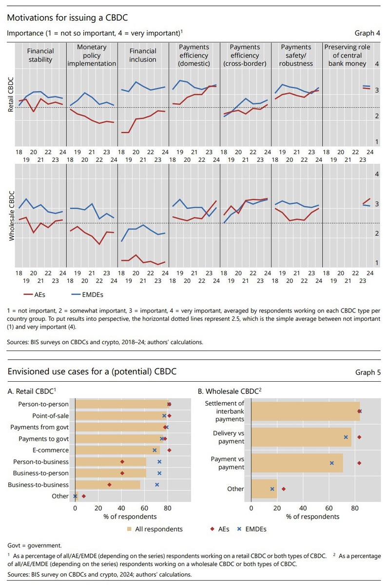 Зачем центральным банкам цифровые валюты? Короткий ответ окажется очень простым: чтобы сохранить роль центрального банка! В условиях всё большего распространения (частных и неподконтрольных ЦБ) денег (криптовалюты), центральные банки хотят сохранить свою роль и свои рычаги влияния на экономику. При этом ЦБ развивающихся стран чаще надеются таким образом и сохранить возможность проведения монетарной политики (для ЦБ развитых стран это не так важно), и повысить инклюзивность, и повысить общую эффективность платежей. Всё одним скопом, в общем! И обычно такие поиски "волшебных палочек" ни к чему хорошему не приводят, но посмотрим... Для центральных банков развитых стран цифровые валюты - это скорее способ повышения эффективности и безопасности платежей и более "розничная" история: платежи между компаниями или между компаниями и людьми в ожидаемые примеры использования цифровых валют попадают реже, чем в половине случаев, а вот всякие p2p - вполне себе!