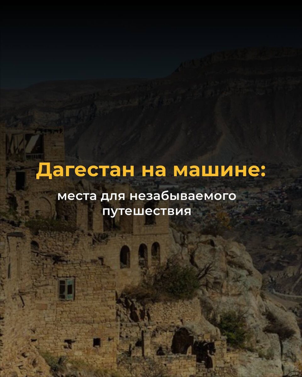 Мечтаете о по-настоящему сильном и ярком путешествии по России? Самое время отправиться в Дагестан — край суровых гор, древнейшей истории и невероятной энергетики. И лучший способ познакомиться с его самобытностью — отправиться в путь на автомобиле! Вот топ-4 локации, которые стоит внести в ваш маршрут обязательно. • Сулакский каньон. Самый глубокий каньон в Европы! Грандиозное творение природы, которое поражает масштабами. Смотровые площадки открывают вид на изумрудную ленту реки Сулак, бегущую по дну ущелья. • Карадахская теснина. Узкое, мрачноватое и невероятно атмосферное ущелье, созданное водой в скалах. В некоторых местах скалы сходятся так близко, что наверху становится почти темно. Природный аттракцион, который вызывает мурашки! На машине можно подъехать почти ко входу (ищите указатель). Либо совместить с треккингом с плато Гуниб для самых выносливых. • Заброшенный аул Гамсутль. Аул-призрак, город-скала, «дагестанский Мачу-Пикчу». Когда-то здесь кипела жизнь, а теперь это