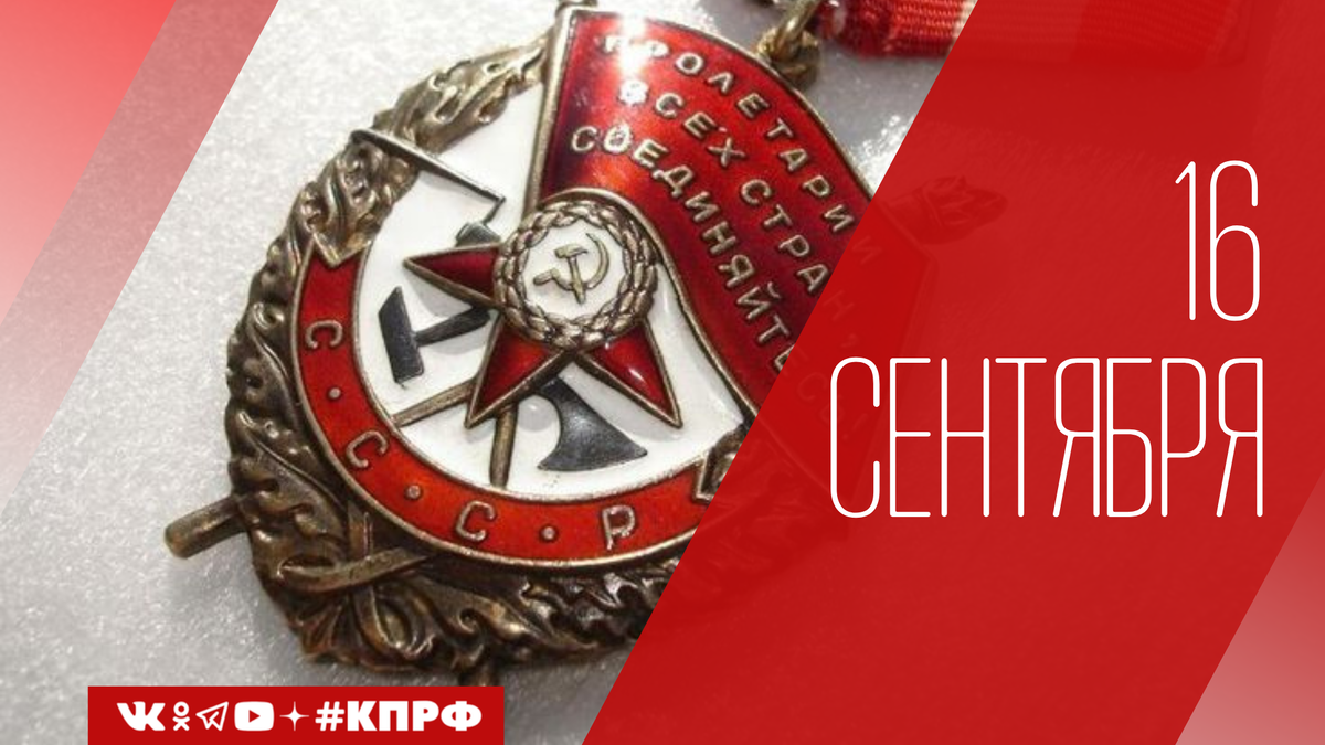 16 сентября 1918 года был учреждён первый советский орден — орден Красного Знамени РСФСР
