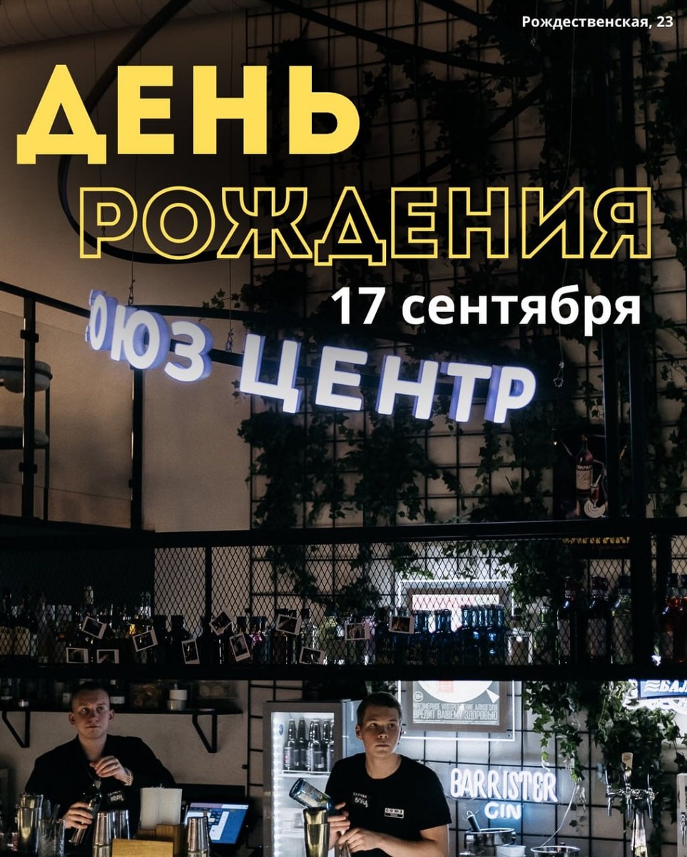 День рождения СОЮЗ CENTR! 🥳 Уже в эту среду: • ведущий, • караоке, • DJ, • подарки для гостей, • праздничный торт. Начало в 18:00 📍Ул Рождественская, 23 😄 Мероприятия Нижний Новгород. Я местный!