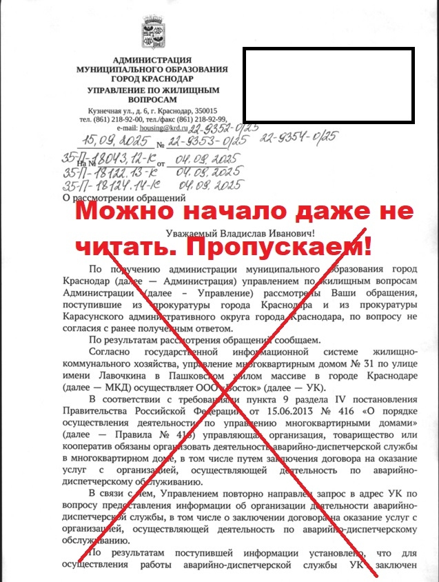Никаких проверок, одни отписки. Как чиновник из Краснодара семь моих жалоб проигнорировал одним письмом