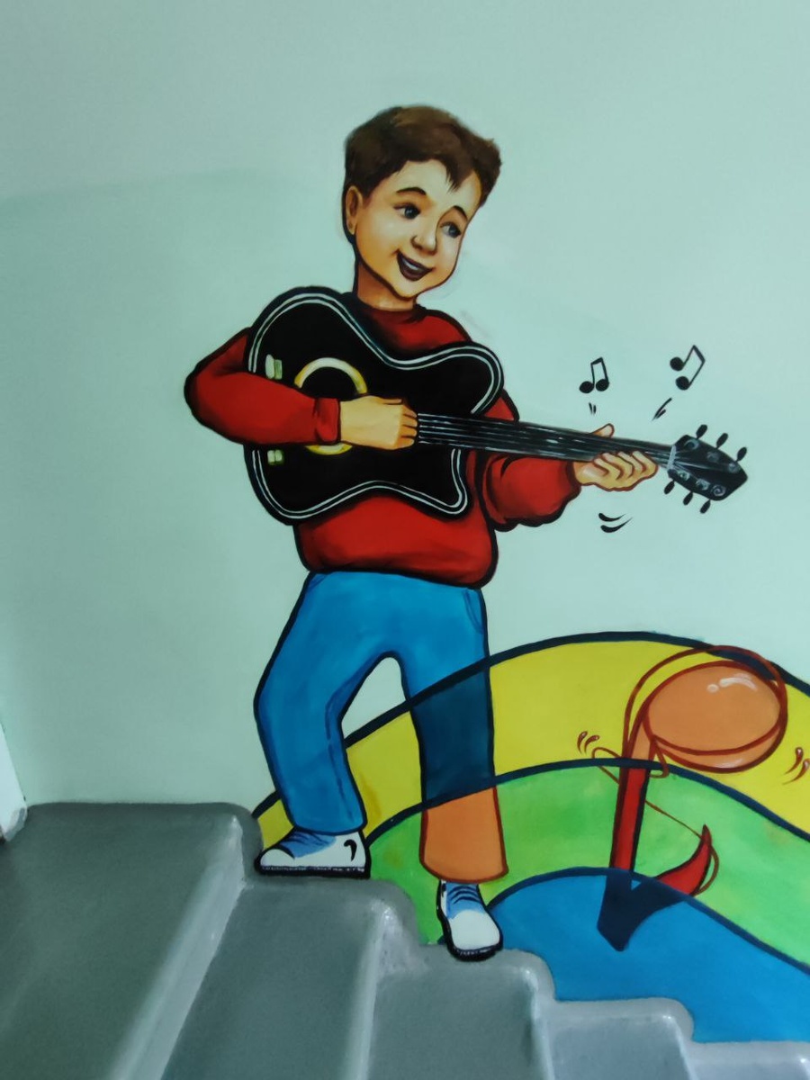 Милое оформление лестницы в музыкальной школе 😊