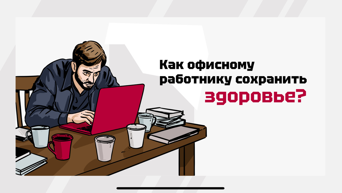 Работа в офисе, на первый взгляд, может показаться безопасной, однако это не совсем так. Малоподвижный образ жизни, постоянное напряжение глаз и стресс могут привести к негативным последствиям для нашего организма. Давайте узнаем подробнее о простых правилах, которые помогут сохранить здоровье, работоспособность и позитивный настрой. Сегодня мы узнаем: 1. Как сохранить здоровье спины? 2. Важность профилактики для глаз 3. Методы борьбы со стрессом 4. Как позаботиться о своем здоровье заранее? 5. Влияние крепкого здоровья на продуктивность Долгое сидение без движения — главная причина болей в спине и шее. Важно не только правильно настроить под себя рабочее место, но и регулярно (каждые 60 мин) вставать, разминаться, менять позу. Даже короткая прогулка по офису или 5 минут растяжки каждый час помогут мышцам не «застаиваться». Постоянная работа за компьютером – это нагрузка для глаз. Если вы чувствуете сухость, напряжение или расплывчатость изображения, нужно дать глазам отдохну