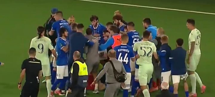 Игроки «Родины» и «Факела» устроили массовую драку после финального свистка