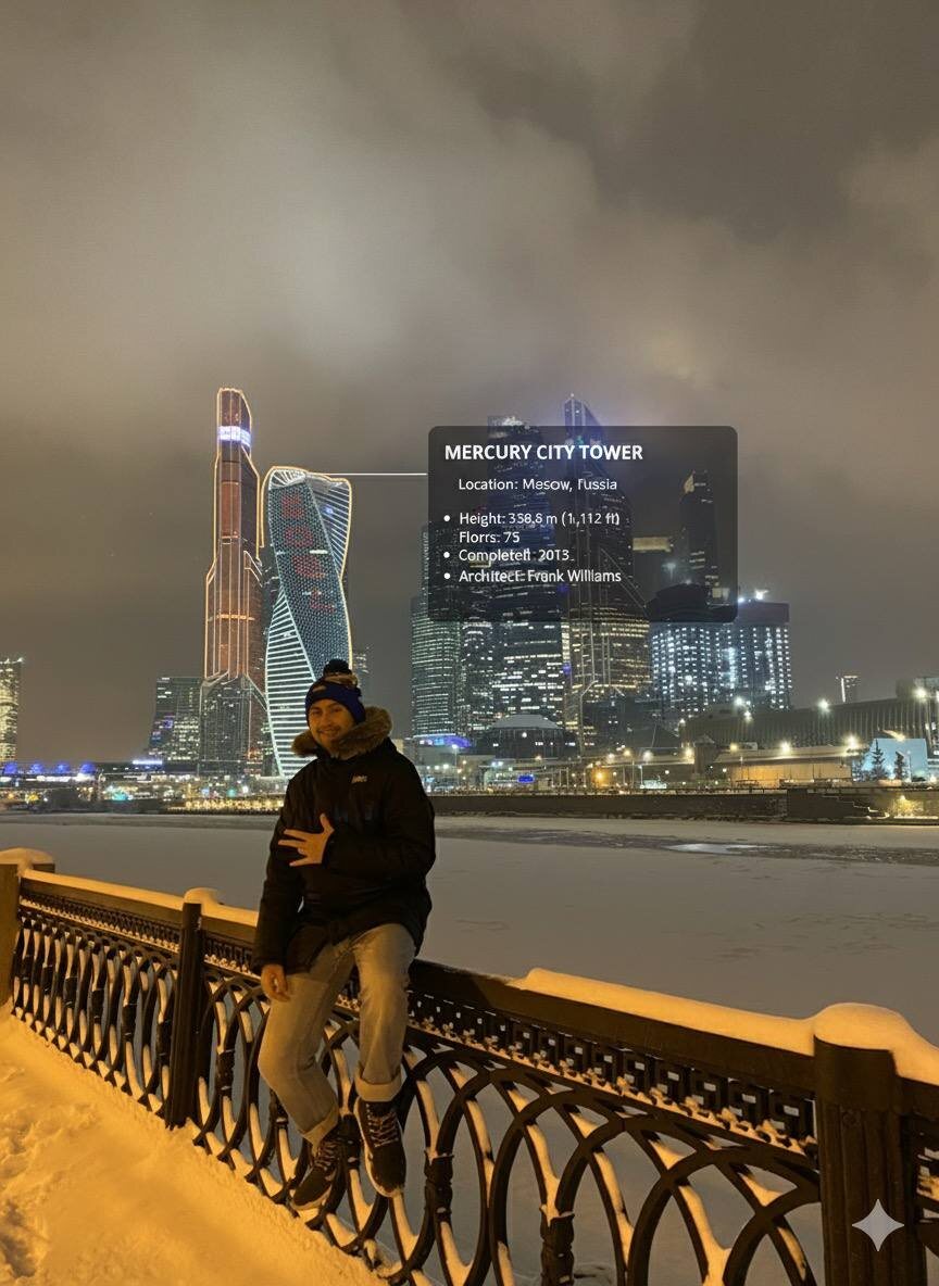 🧿AR инфа об объекте в Nano Banana: добавляем информацию в дополненной реальности Nano banana это фича внутри Gemini , а он обучен на основе информации из поисковика в Гугле. Что дает ему знания мира, поэтому вы можете просто загрузить скриншоты реального мира и попросить его добавить информацию об объекте. У меня правда качество поехало, скорее всего зашел за «невидимые лимиты» Промптецкий: you are a location-based AR experience generator. highlight [здесь объект сам] in this image and annotate relevant information about it 🤖Saramudvlad | забустить 🤖