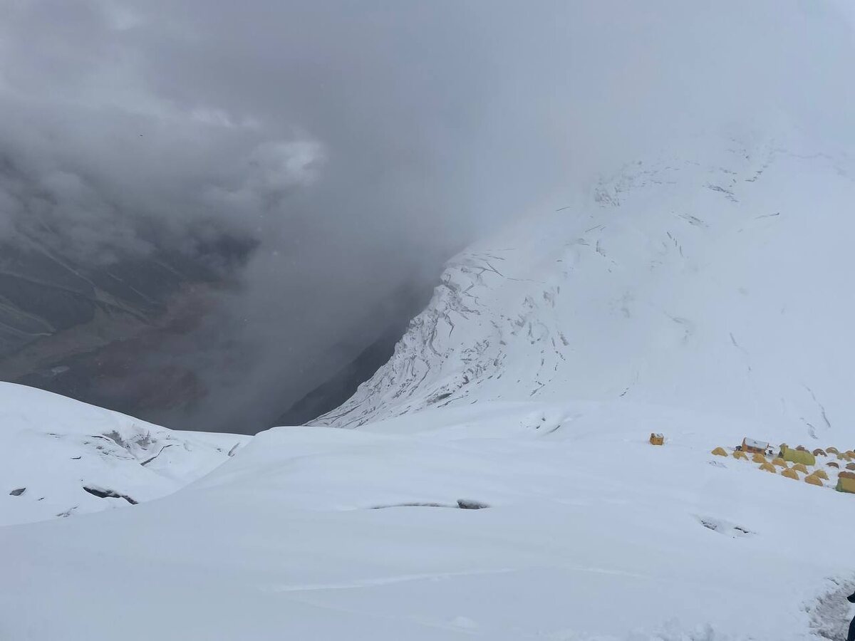 Манаслу. Второй круг акклиматизации. Переход в лагерь 2. 6300 метров. 16 сентября. В первый раз этот переход через ледник, напомнивший Кхумбу, дался нелегко и занял больше шести часов. Настало время проверить, как идет акклиматизация. Торопиться нам было некуда. Ну, мне-то точно. Да и ребята не рвались слишком рано приходить во второй лагерь, потому что там кроме палаток, засыпаемых снегом, ничего нет. К тому же в последние дни очень много людей стали ходить на акклиматизацию, вследствие чего на двух стенках образовались гигантские пробки. Потом выяснилось, что не только там пробки образовались, но там прям катастрофичные. Поэтому выйдя попозже мы надеялись, что основная масса гуляющих уже продвинется выше этих стенок. Надежды, как говорится, юношей питают, но вовсе не должны сбываться. Ребята вышли в девять, я в полдесятого. Где-то через час пути догнала их и обогнала. А затем мы дружно встряли не просто в пробки, в пробищи. На ожидание пока вялотрепыхающееся на сн
