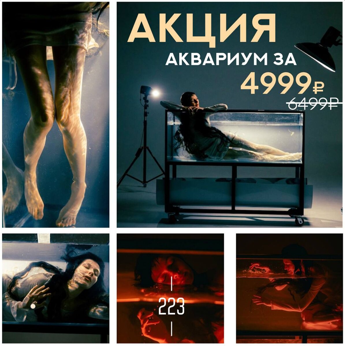 🌊Лови момент - 4999₽, вместо 6499₽ за 4 часа аренды аквариума до 15 октября Вы уже знаете, что в Локации 223 появился огромный аквариум! Это не просто фон, не реквизит, а портал в подводный мир! Размеры аквариума: 160*55*60. Установим в зал «Циклорама» и «Винтаж», наберем теплую воду для вашей съемки. Успейте запечатлеть моменты, которые будут волновать ещё долго. Места ограничены — бронируйте дату уже сейчас! Забронировать и узнать условия вы можете, написав нам в ВК. ___________ 🌊А еще, на следующей неделе мы запускаем напольный бассейн 3х3 метра, для воплощения ваших самых смелых идей! Следите за новостями в группе. ___ Напоминаем про наш конкурс. Осталось всего 5 дней! Разыгрываем 20 часов аренды в залах Локация 223 Желаем удачи в розыгрыше! ___ За фото благодарим: Ph: sophiebirdcosmic Md: annushka_annushka Art: korzukhin_artist