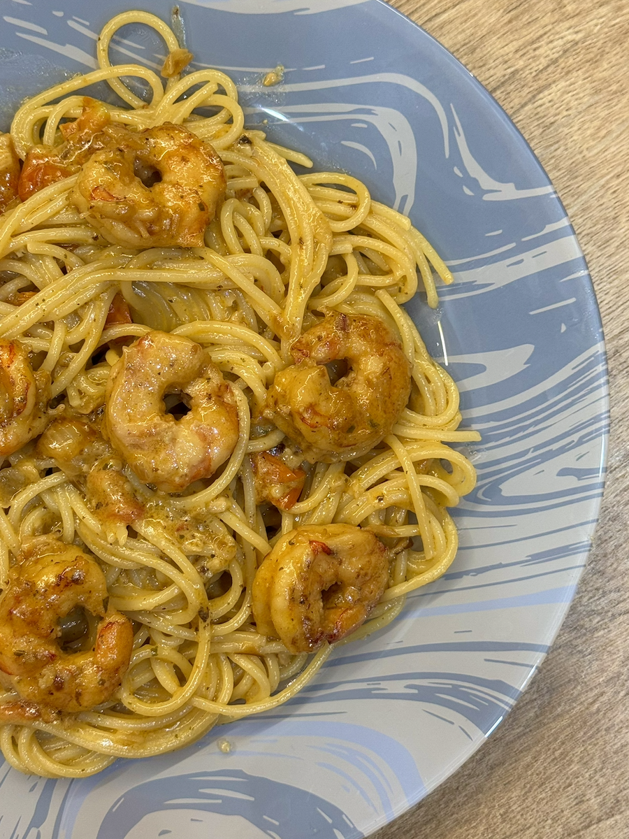 🧂 Соль, перец, прованские травы — по вкусу Рецепт: 1. Креветки очистите, промойте и обсушите. 2. Разогрейте сливочное и немного оливкового масла на среднем огне. Обжарьте креветки с двух сторон до золотистости, посолите, поперчите и присыпьте прованскими травами. 3. Добавьте нарезанные томаты черри и желтые томаты (для красок), обжаривайте пару минут. 4. Всыпьте измельчённый чеснок, перемешайте и обжаривайте ещё 1–2 минуты. 5. Влейте сливки, потушите соус 7–10 минут. Затем выньте креветки. 6. В соус опустите готовые спагетти, перемешайте и дайте им пропитаться вкусами 5 минут. 7. При подаче выложите сверху креветки, украсьте свежей зеленью и сыром при желании. Приятного аппетита! ❤️ #рек #рецепт #рекомендации #паста #фудблог #ужин #рецептпасты #пастаскреветками