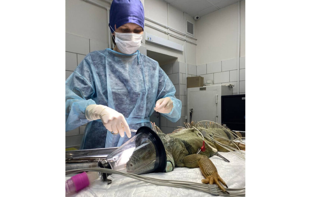 Игуану со сломанными пальцами прооперировали ветеринары в Москве