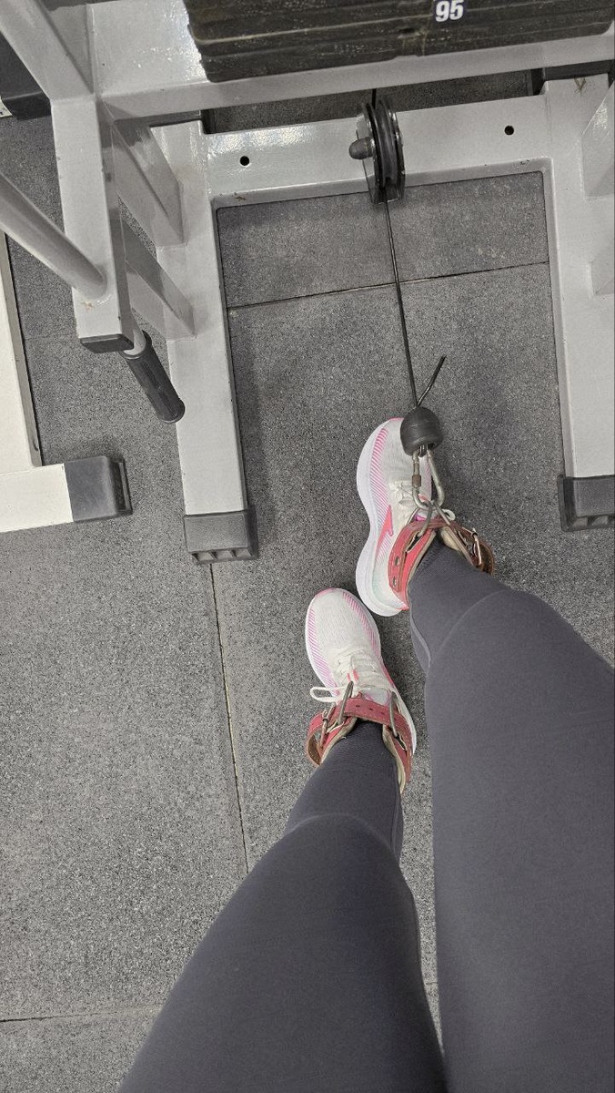 Первое: ненавижу когда пачкаются кроссы в зале Второе: в зале затеяли мини ремонт Третье: пол часа искала эти розовые штуки Четвертое: сегодня была очень громкая музыка (с учётом, что на весь зал всего было человек 10, зачем???) Пятое: это 86 тренировка