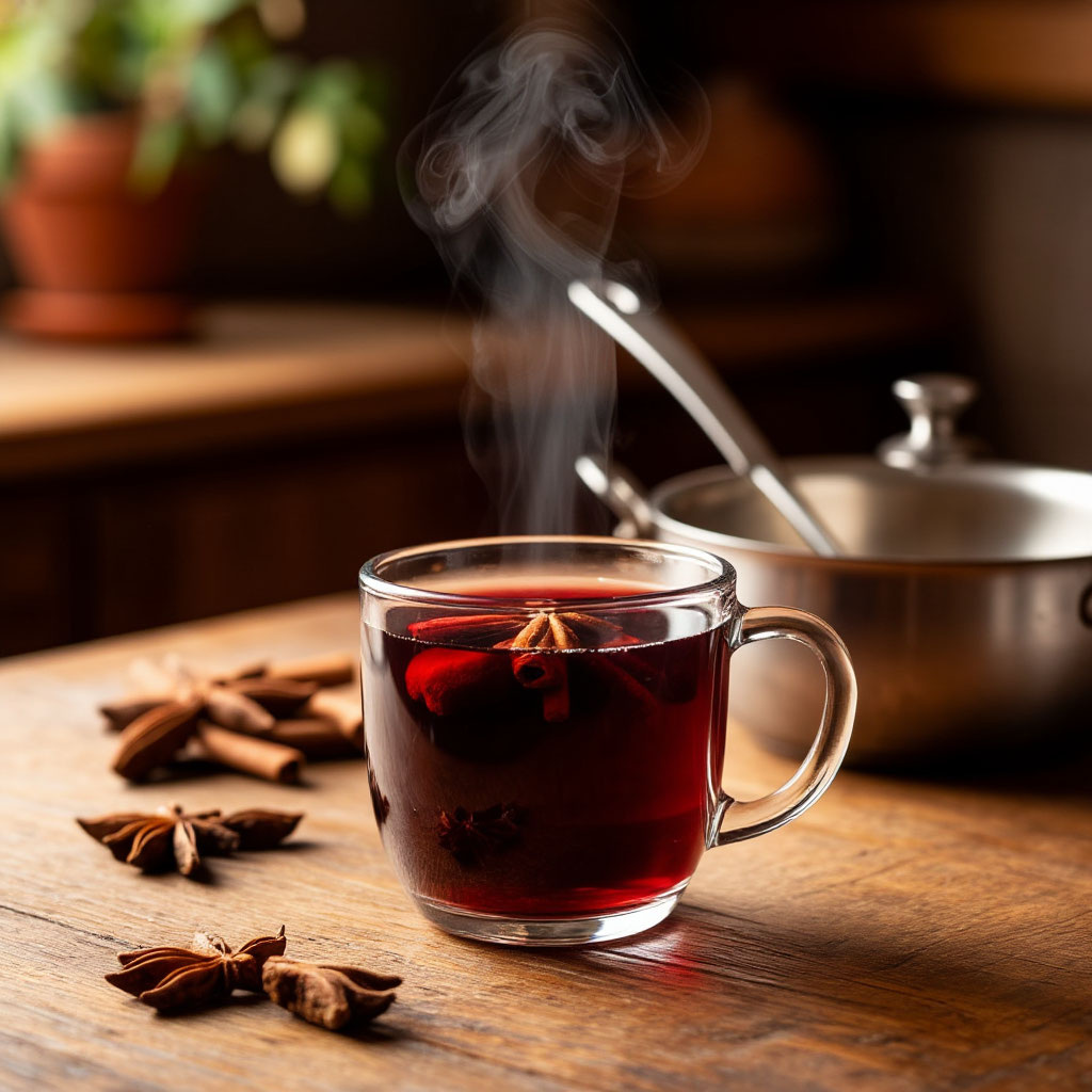 Глинтвейн — это чудесный напиток, который согревает изнутри и дарит ощущение уюта и тепла. Его особенно приятно пить в прохладные дни, когда хочется расслабиться, или при первых признаках недомогания — специи в составе оказывают положительное влияние на организм, помогая укрепить иммунитет и улучшить самочувствие. Традиционно глинтвейн готовят на основе вина, но безалкогольный вариант на соках не уступает в аромате и вкусе, оставаясь легким и полезным. Давайте приготовим его вместе! 🍵✨ Пропорции можно корректировать по вкусу — если любите более пряный напиток, увеличьте количество специй. На указанные ингредиенты получится около 8 порций 😋 Берем кастрюлю и вливаем в нее вишневый и виноградный соки и перемешиваем, чтобы соки соединились в ароматную основу. Апельсин тщательно моем под теплой водой и, не снимая цедру, нарезаем апельсин на тонкие кружочки. Она придаст напитку цитрусовый аромат и приятную терпкость. Затем добавляем кружочки апельсина 🍊 в кастрюлю с соками и туда же отпра