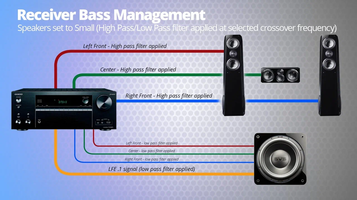Домашний кинотеатр – это не только мощные колонки и эффектные спецэффекты, но и правильная настройка оборудования. Даже самая дорогая техника может разочаровать, если задать неверные параметры в ресивере. Один из самых частых вопросов у владельцев: какую частоту среза выбрать и ставить ли колонки в режим «большие» или «маленькие»? На форумах вы найдёте десятки споров, но единого ответа там нет. Важно понимать: в меню ресивера «Small» и «Large» не привязаны напрямую к физическому размеру акустики. Аналогично работает и настройка сабвуфера. В режиме LFE сигнал разделяется строго по границе, а LFE + Main подаёт полный спектр на фронты и сабвуфер одновременно. Да, баса становится больше, но контролировать его практически невозможно. В маленьких помещениях это почти всегда приводит к гулу и хаосу. Частота среза (она же кроссовер) – это точка, где сигнал делится между колонками и сабвуфером. Всё, что выше выбранного значения, идёт на колонки, всё, что ниже – на саб. Важно помнить, что фильт