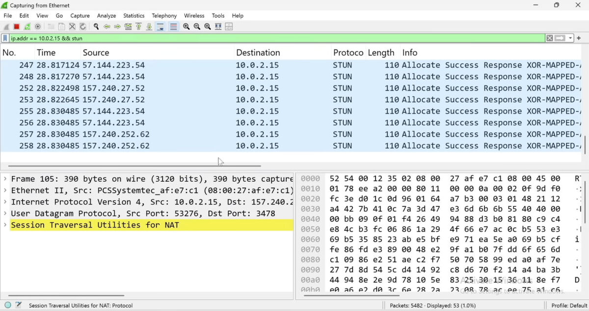 ⚠️В мире OSINT-расследований установление связи между виртуальной личностью и реальным физическим местоположением часто является ключевой задачей. Мы мастерски анализируем метаданные фотографий, паттерны поведения в соцсетях, пересекаем данные из разных источников. Но иногда цель ведет себя осторожно, не оставляя цифровых следов в открытых источниках⚠️ ⚡️ Однако существует метод, позволяющий в определенных условиях получить один из самых ценных артефактов — реальный IP-адрес пользователя. Этот метод основан не на уязвимостях в привычном смысле, а на фундаментальном принципе работы современных коммуникаций — протоколе STUN. В этой статье мы разберем, как это работает, как применить это на практике с помощью Wireshark, и, что крайне важно, обсудим ограничения и этические рамки этого метода. Прежде чем хвататься за Wireshark, важно понять механизм. Мессенджеры (Telegram, WhatsApp, Signal... практически все) используют сквозное шифрование (E2EE). Это защищает содержимое сообщений, но не