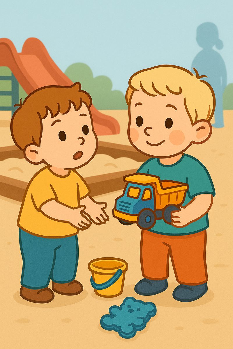 3–4: «Можно машинку?» / «Можно по очереди?» / «Обмен на минуту?»