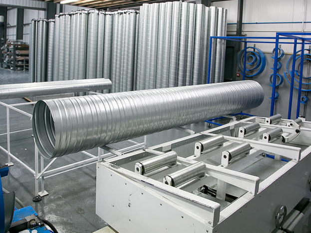 - Для круглых воздуховодов: Заготовки подаются на спирале- или продольно-навивные станки, где лист металла сворачивается в трубу нужного диаметра. Края соединяются посредством фальцевания или сварки. Спирально-навивные воздуховоды отличаются высокой прочностью и герметичностью шва.