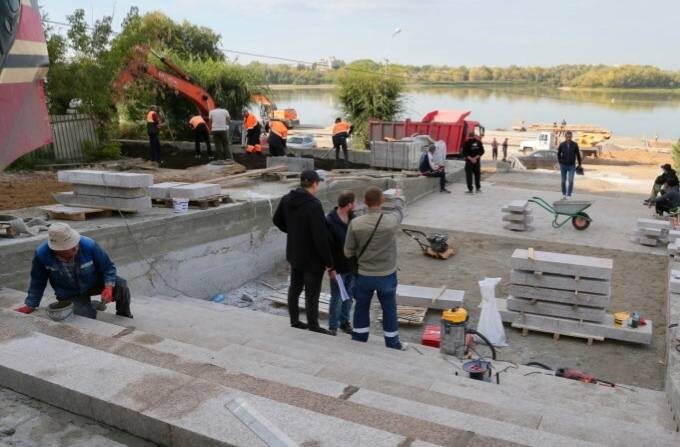 🌊 В Омске обновляют пляж «Центральный-2» и улицу Короленко Старые покрытия и лестницы демонтированы, тротуары и освещение почти готовы. Впереди — гранитные лестницы, велодорожка, спортивные площадки и посадка новых растений. 🌳 В сквере 200-летия Омского кадетского корпуса уже уложили рулонный газон, скоро высадят кустарники и черемуху. 📌 Работы ведутся в две смены, чтобы горожане смогли наслаждаться обновлённой зоной уже скоро! 📸: телеграмм-канал Город Омск.