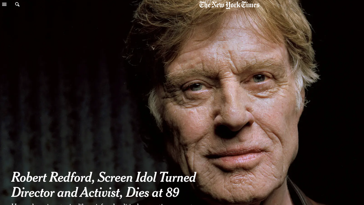 О смерти Роберта Редфорда сообщила исполнительный директор рекламного агентства Rogers & Cowan PMK Синди Бергер, передаёт The New York Times.