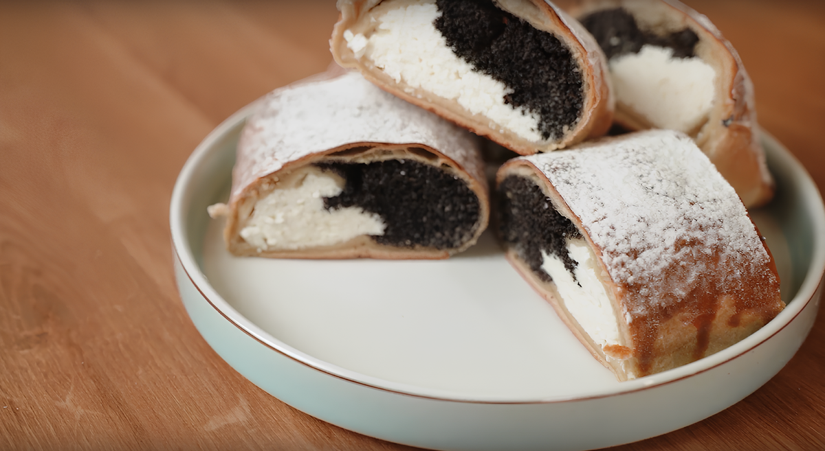 Это идеальный десерт для уютного вечера, воскресного чаепития или даже семейного праздника. Готовится несложно, а результат радует — сочетание мака, сливочной творожной начинки и хрустящего теста подарит вам настоящий гастрономический восторг. Слоеное тесто – 250 гр Творог – 200 гр Мак – 100 гр Молоко – 100 мл Сахар – 2 ст.л Яйцо – 1 шт Сливочная Омичка – 230 гр 1. Для маковой начинки в кастрюльке смешиваем мак, молоко и сахар. Все это ставим на средний огонь. Мак должен медленно вариться до полного выкипания молока. 2. Когда молока почти не останется, снимаем массу с огня и пробиваем блендером, чтобы начинка была более сочной и ароматной, а мак лучше усваивался. После охлаждения маковой начинки добавляем к ней белок одного яйца. 3. Для приготовления творожной начинки смешиваем творог и сливочную Омичку. Можно объединить продукты лопаткой или с помощью блендера. Если хотите получить более сладкий десерт, можно добавить несколько ложек сахара. 4. Наконец собираем рулет. Слоен