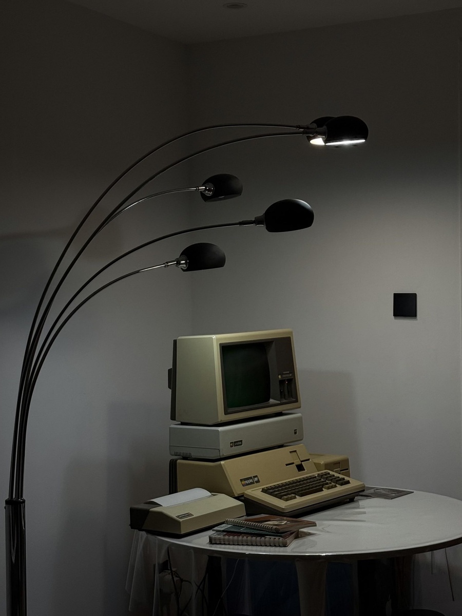 Идеальное рабочее место офисного сотрудника образца где-то 1982 года. Полный комплект компьютера Apple III с оригинальным монитором, принтером SilentType, внешним приводом... Хотя надо сказать, что машина эта особого успеха на рынке не снискала: была дорогой, первые 14 тысяч экземпляров вообще пришлось отозвать, а там уже и первый Макинтош вышел. @fixed