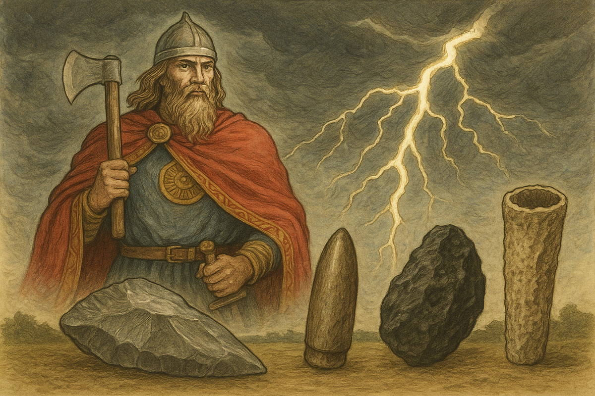 Гром и молния всегда пугали и вдохновляли людей. Для славян гроза — это средство Перуна, а «стрелы», выпавшие из неба, — его следы на земле. Наука говорит нам, что под мифами скрываются реальные объекты: орудия, окаменелости, стекловидные следы удара молнии и — иногда — настоящие метеориты. Но независимо от происхождения, сила этих камней — в том, что люди поверили в них и наделили магией.