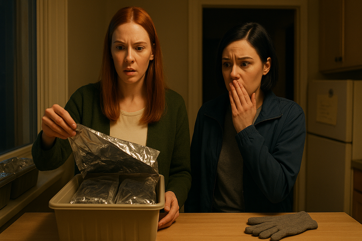 Пауза повисла, тянулась, как резина. Марина достала телефон, включила камеру. Пальцы дрожали, экран то приближался, то уезжал. Она сделала фото подоконника, бирки, пакетов. Потом подняла фольгу на секунду и щёлкнула внутренности ящика. Холодок побежал по спине.