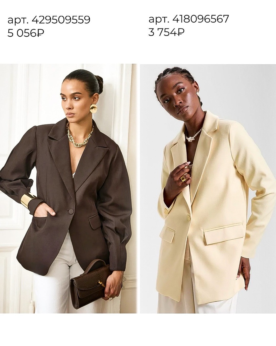 Эти шесть артикулов перекрывают все сценарии — от офиса до коктейля. Берите один тёмный базовый (270923132 или 429509559), один светлый освежающий (418096567) и один акцент (169930887 или 450203773). Добавьте короткий твид 436554196 для «французского» жеста — и ваша осенняя капсула будет собираться мгновенно.
