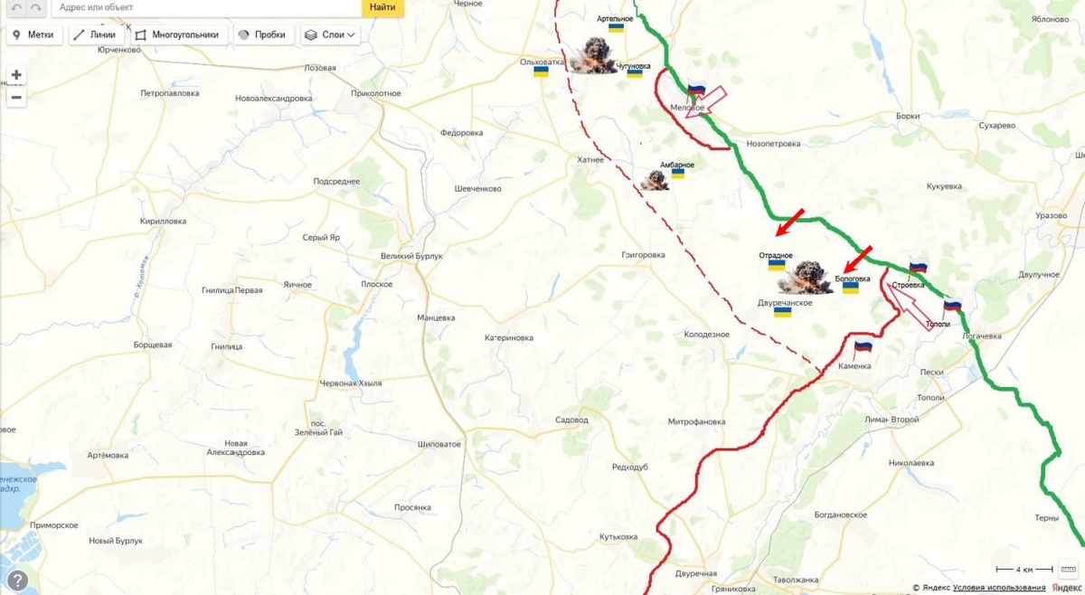 ВС РФ пересекли государственную границу и атакуют у деревень Бологовка и Отрадное.