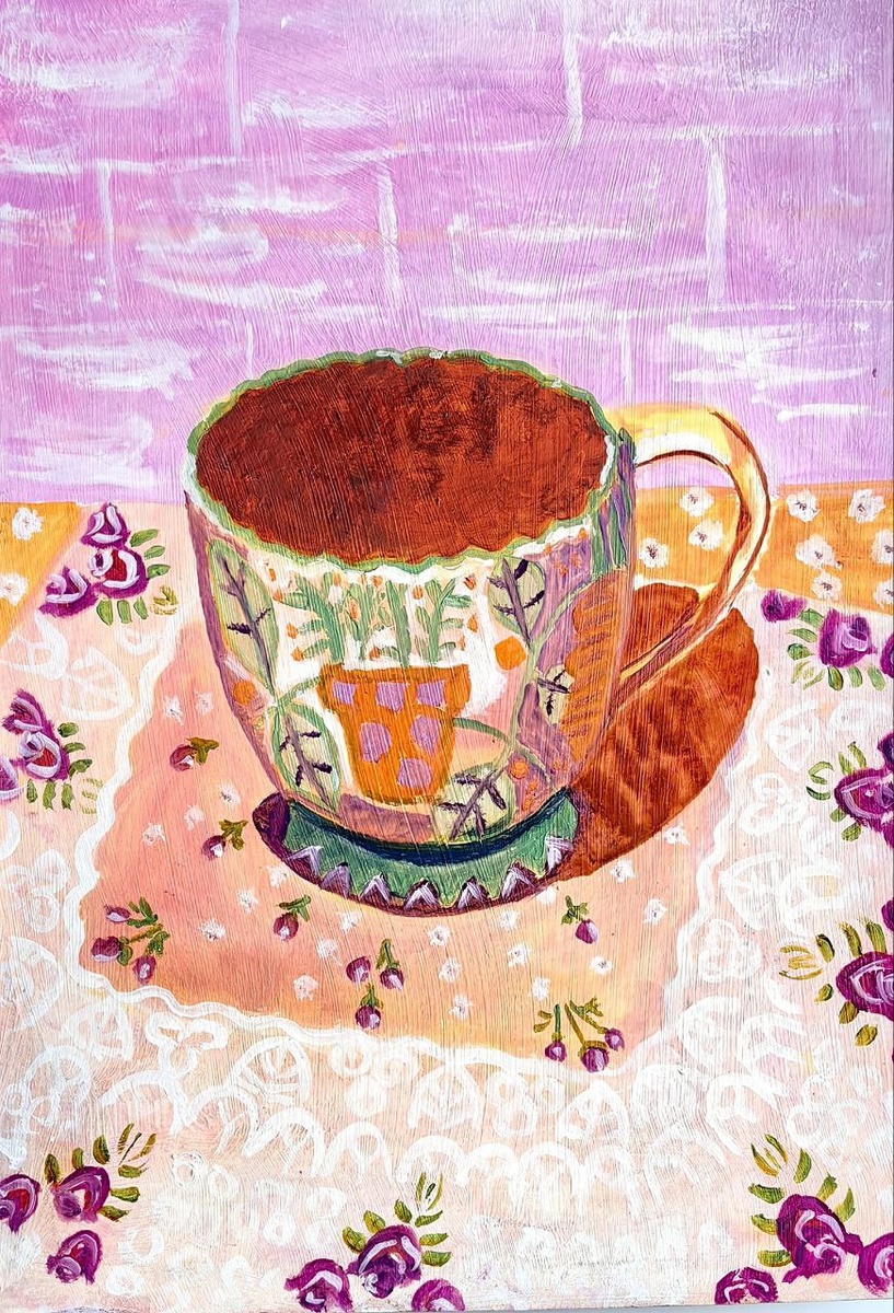 А вот такую чашку нарисовала маслом на грунтованном акрилом картоне