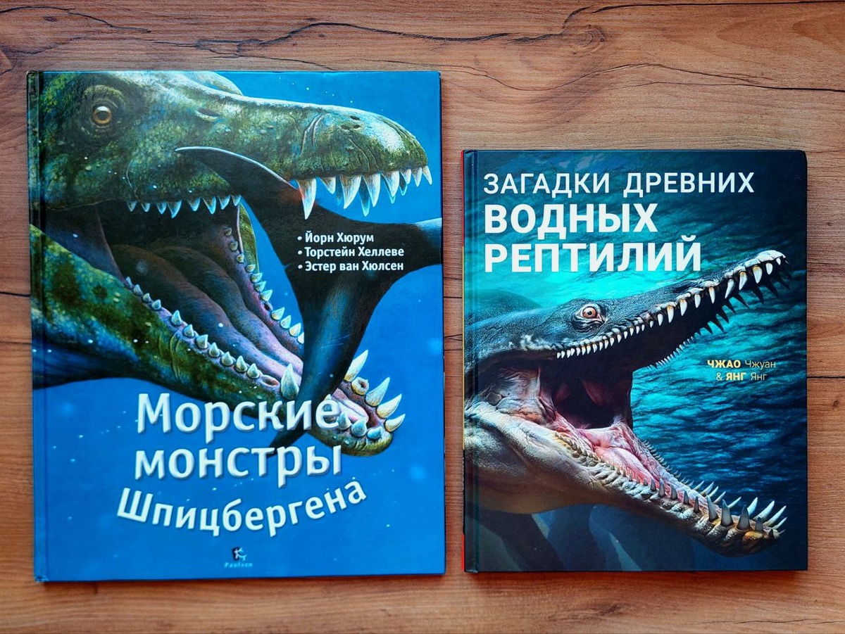 Не так давно я делал подборку из восьми главных книг о морских рептилиях. В комментариях знающие люди указали, что пару заметных книг я все-таки пропустил. Что ж, решил прислушаться ко мнению народа, книги купил и прочитал. Пойдем от плохого к хорошему. Сначала — «Загадки древних водных рептилий». Кто не в курсе — это часть трилогии. На русском также вышли «Тайны сухопутных динозавров» и «Секреты летающих ящеров» от тех же авторов. Я как-то листал эту трилогию на выставке нон-фикшен, но тогда покупать не стал. Как выяснилось, не зря. Книга сделана… небрежно. На одной из первых же страниц мы видим «мозозавра»: Дальше текст лучше не становится: Пример невнимательного (или просто машинного) перевода. У морских рептилий были не плавники, а ласты (ну, кроме хвостового): А тут слово «период» на одной странице использовано в двух разных значениях: Для книги, где текста, по сути, почти нет, можно было к нему подойти и посерьезнее. Но Анубис с ним, с текстом. Такие книжки же покупают ради карти