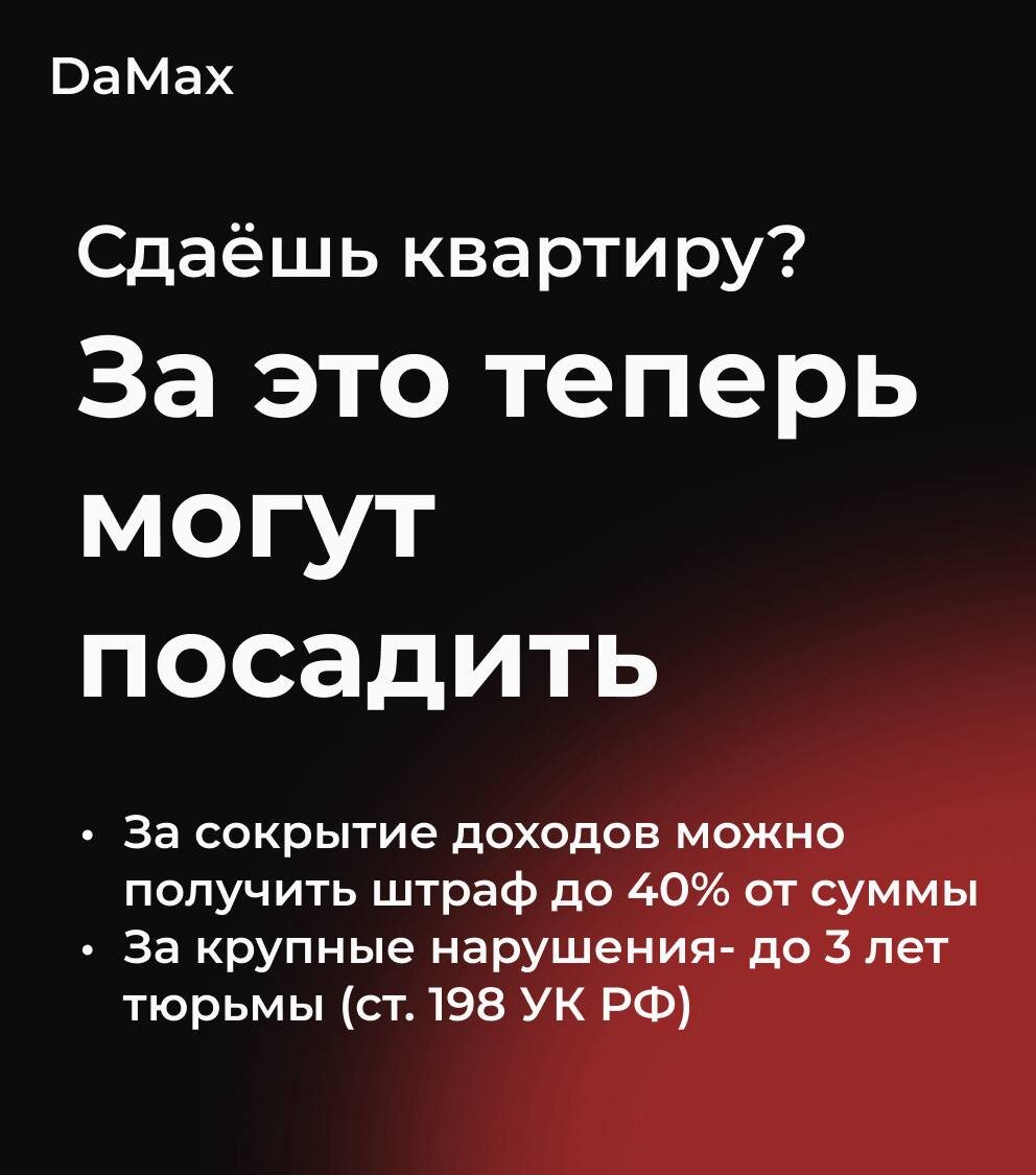 ⚡️⚡️⚡️⚡️ Сдаёшь квартиру? За это теперь могут посадить👮♂️ В России началась жёсткая кампания против «серой» сдачи жилья. Теперь арендодателей предупреждают: — за сокрытие доходов можно получить штраф до 40% от суммы, — а за крупные нарушения — даже до 3 лет тюрьмы (ст. 198 УК РФ, подтверждение). То, что раньше считалось «мелким риском», сегодня превращается в серьёзную угрозу. С 1 января 2025 года вступили в силу Постановления №1951 и №1952. Все средства размещения — от пятизвёздочных отелей до гостевых домов — обязаны пройти классификацию, попасть во федеральный реестр и указывать категорию во всех объявлениях. Видео об этом тут 👉 👉 Без этого рекламировать квартиры для посуточной аренды станет невозможно. Фактически, «крышка» для сдачи квартир закрылась, рекламировать и сдавать официально нельзя, а за неофицальную сдачу статья #️⃣ ⚡ Владимир Путин прямо заявил: «Мы должны активнее бороться с теневым сектором экономики. Это крайне важно для развития предпринимательства» (M24.ru