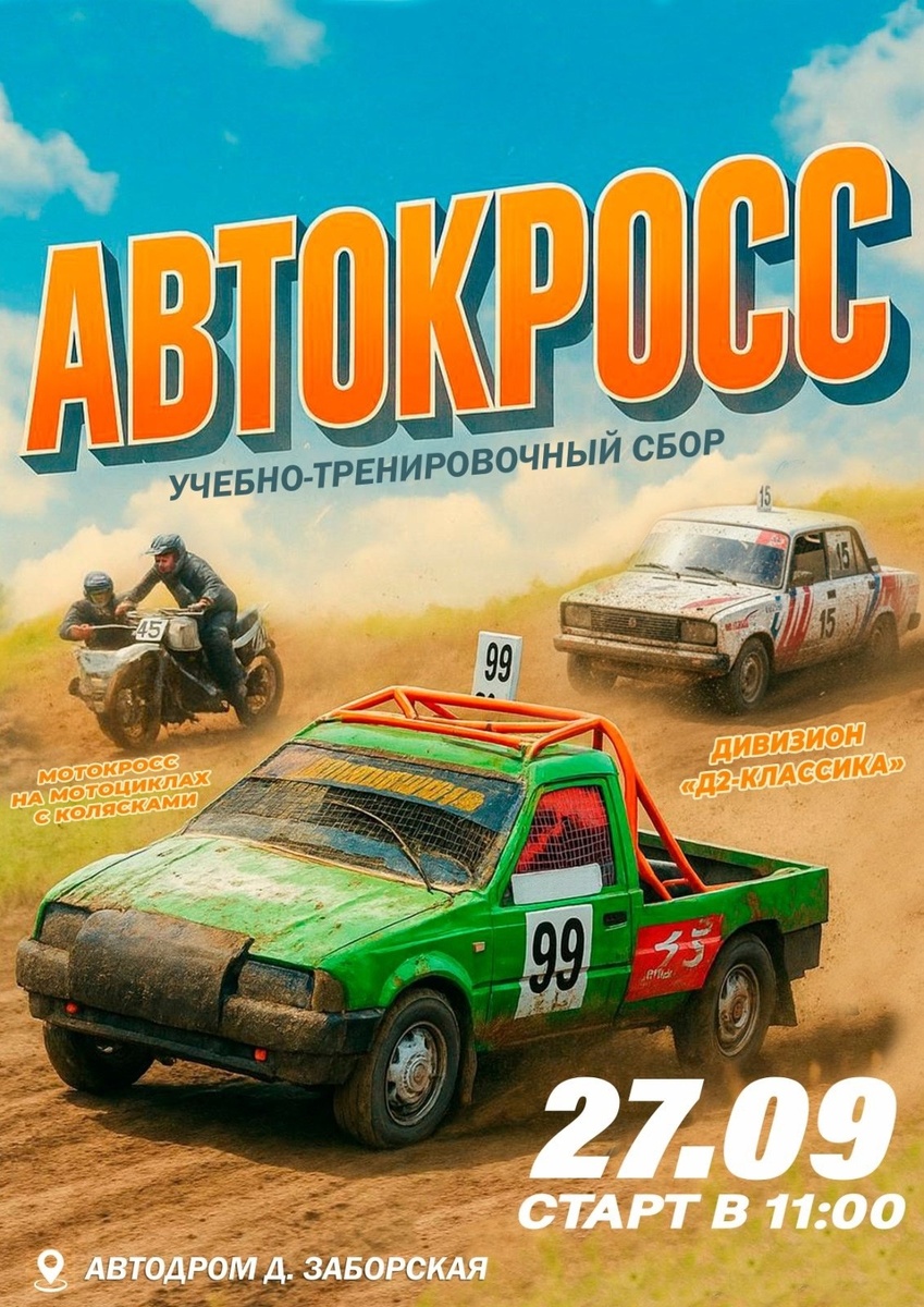 🏎️ Готовы к захватывающим гонкам? 27 сентября на автодроме в деревне Заборской пройдут зрелищные соревнования по автокроссу