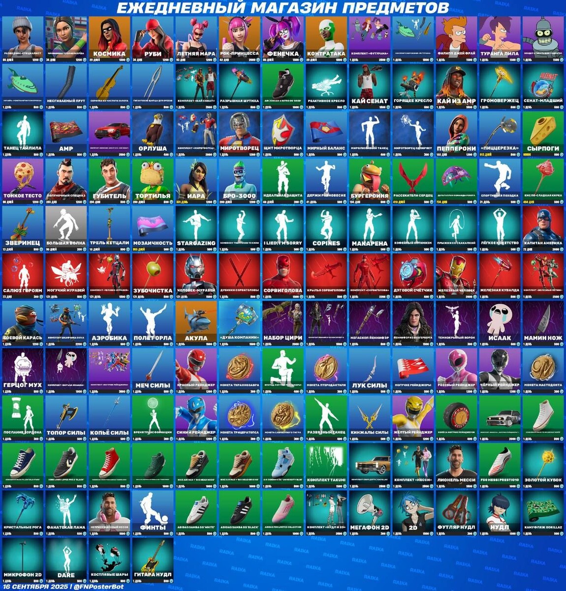 16 сентября 2025 года в Fortnite состоялось долгожданное обновление магазина предметов. Разработчики из Epic Games порадовали игроков новыми скинами, эмоциями и другими косметическими улучшениями. 🚀 В этот раз в магазине появились: — Новые скины для персонажей, вдохновленные последними событиями в игре. — Уникальные эмоции, которые добавят еще больше веселья в ваши матчи. — Разнообразные обёртки для оружия, которые помогут выделиться на поле боя. Не упустите возможность обновить свой арсенал и выглядеть стильно в новых сражениях. 💥 Напоминаем, что все предметы в магазине доступны для покупки только в течение ограниченного времени, так что не откладывайте приобретения на потом. 🔗 Больше новостей смотрите на News.Mentup
