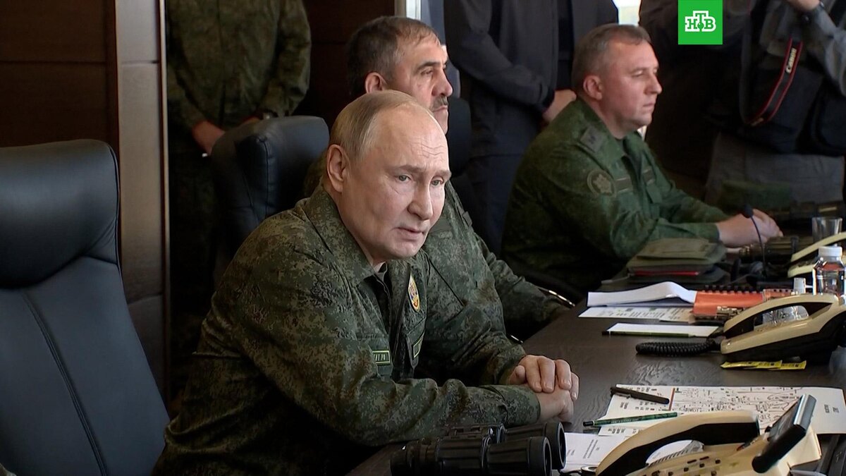 [ Смотреть видео на сайте НТВ ] На полигоне Мулино в Нижегородской области состоялась кульминация масштабных учений «Запад-2025». Туда приехал Владимир Путин. Российский лидер прибыл в военной форме — это полевой комплект формы без погон, с нашивками «Президент РФ» и «Путин В. В.» и шевронами с триколором и двуглавым орлом. Глава государства назвал цель масштабных совместных с Белоруссией маневров. «Отработать все необходимые элементы по безусловной защите суверенитета, территориальной целостности, защиту от любой агрессии Союзного государства», — сказал Путин. Также российский лидер осмотрел выставку военной техники, на которой примерил тепловизионные очки «Стрекоза», перезарядил пистолет ПЛК. Также Путину рассказали о характеристиках новой винтовки «Аркуда СТ». Также министр обороны Андрей Белоусов доложил верховному главнокомандующему о ходе учений. [ Смотреть видео на сайте НТВ ]