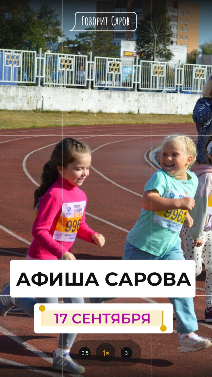 ↗ ЧТО ГДЕ ПРОИСХОДИТ В САРОВЕ 17 СЕНТЯБРЯ 🏃Проект «Спорт в каждый двор» 10:00-13:00 Спортивная площадка, ул. Казамазова, 10 16:00-19:00 Спортивная площадка ул.Павлика Морозова 🌳Парк культуры и отдыха имени П.М.Зернова (тел. 9-82-50, 9-82-60) 16:00-19:00 Работают аттракционы парка имени Зернова (Акция «Льготное катание») ⚽Стадион «Икар» (просп. Музрукова, 43, тел. 9-93-64) 18:00 Чемпионат и первенство города Сарова по легкой атлетике 🏛Городской музей (пр. Мира, 48, тел. 3-42-56) Выставка «Щит отечества», посвященная 80-летию атомной отрасли «Не повторяется такое никогда» выставка фотографий из фондов Городского музея к началу нового учебного года Курс познавательных занятий по предварительной записи (6+): «Лес полон сказок и чудес», «Пернатые соседи», «Жужжащие истории», «Красивые и редкие», «История рядом» 🖌Художественная галерея (пр. Мира, 1, тел. 7-02-87) 15:00 Творческая мастерская «Штрихи города» (Пушкинская карта, 8-11 классы)…