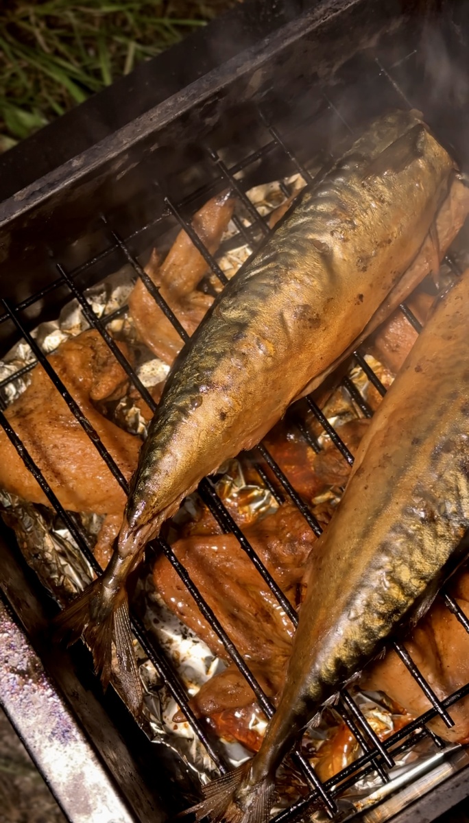 Эта вкуснейшая рыба сделанная в коптильне на мангале понравится вам с первого раза Скумбрия горячего копчения Рецепт Ингредиенты Скумбрия - 2 шт