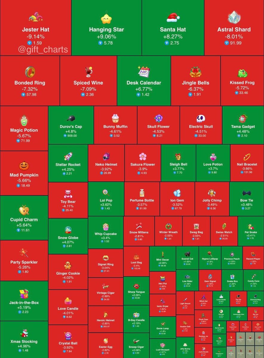 πΠ§ΡΠΎ ΡΠ°ΠΌ Ρ ΠΏΠΎΠ΄Π°ΡΠΊΠ°ΠΌΠΈ? Π ΡΠ½ΠΎΠΊ ΠΏΠΎΠ΄Π°ΡΠΊΠΎΠ² Π² Π±ΠΎΠΊΠΎΠ²ΠΈΠΊΠ΅, ΡΠ°ΡΡΡ ΠΊΠΎΠ»Π»Π΅ΠΊΡΠΈΠΉ Π² ΠΏΠ»ΡΡΠ΅, ΡΠ°ΡΡΡ Π² ΠΌΠΈΠ½ΡΡΠ΅ πΌΠΠΈΠ΄Π΅Ρ ΠΏΠΎ ΡΠΎΡΡΡ: +9.06% Hanging Star π π½ΠΠΈΠ΄Π΅Ρ ΠΏΠΎ ΡΠ½ΠΈΠΆΠ΅Π½ΠΈΡ: -9.14% Jester Hat π πΠΠ°ΠΏΠΈΡΠ°Π»ΠΈΠ·Π°ΡΠΈΡ ΠΏΠΎΠ΄Π°ΡΠΊΠΎΠ² π½-0.53%β€οΈ53.50M (~$169.60M)