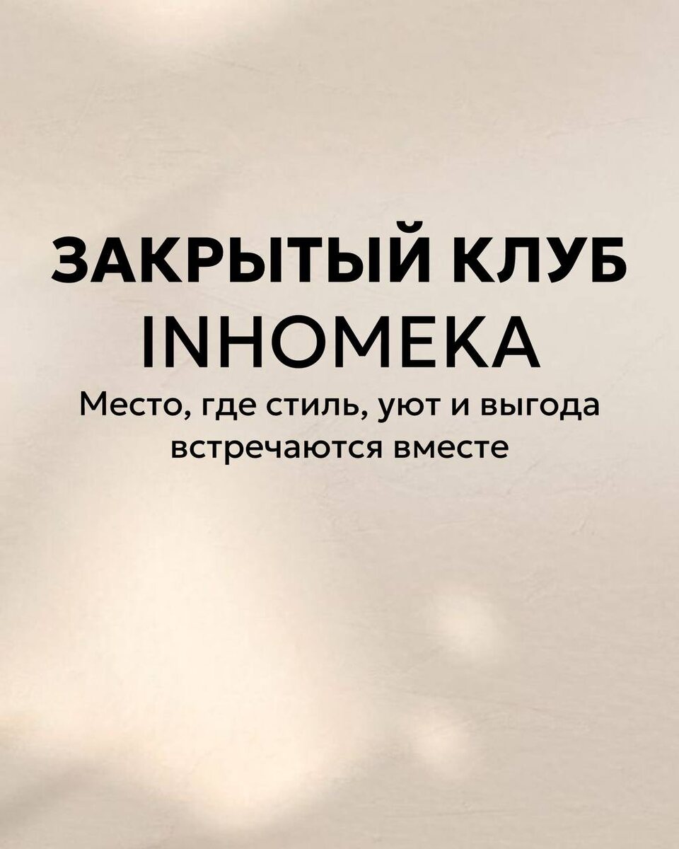 Закрытый клуб INHOMEKA — это ваш доступ в мир стильных новинок, тест-драйва и щедрых кешбэков ✨ Получайте товары, пробуйте дома и возвращайте от 70%! Вступайте прямо сейчас