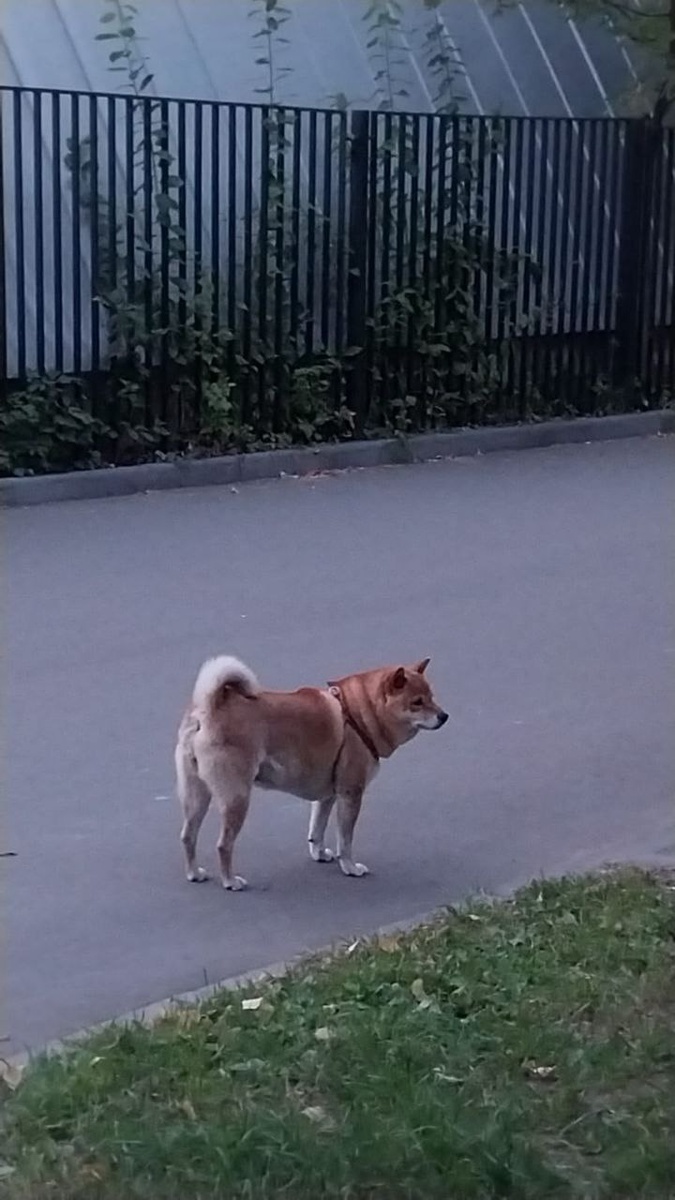 Собачка в ошейнике около взрослой поликлиники на ул.Веерная. Акита-ину без хозяина