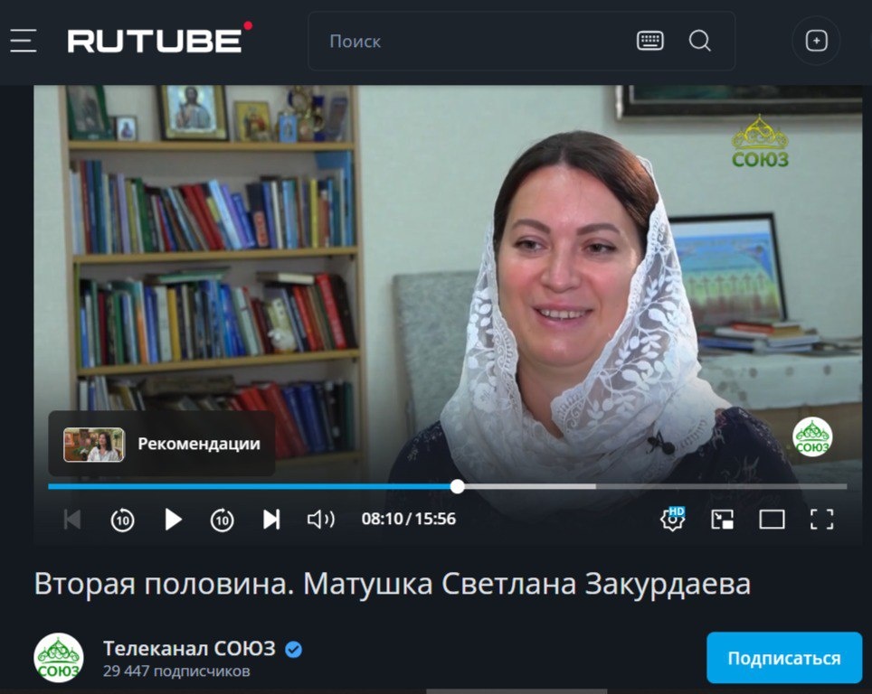 На телеканале «СОЮЗ» показали шестой выпуск цикла «Вторая половина», снятого в Тольятти 16 сентября 2025 года на телеканале «СОЮЗ» вышел шестой выпуск цикла «Вторая половина». Героиней программы стала матушка Светлана Закурдаева – супруга настоятеля храмов во имя Архангела Михаила с. Новое Ерёмкино и во имя великомученика Димитрия Солунского с. Пискалы иерея Александра Закурдаева. Смотреть: https://tltepar.ru/novosty/2025/09/na-telekanale-soyuz-pokazali-shestoy-vypusk-tsikla-vtoraya-polovina-snyatogo-v-tolyatti.html
