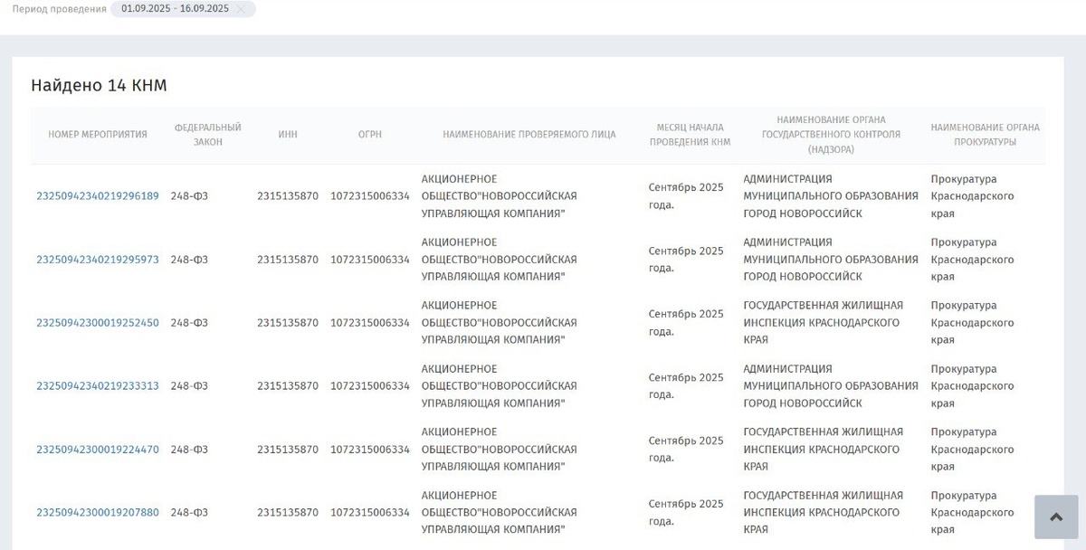 Среди органов, обратившихся в прокуратуру: Администрация МО г. Новороссийска, ГЖИ КК, Роспотребнадзор, МЧС КК и другие. Нарушения — те же, о которых ежедневно жители пишут в чат МЦУ и Рафаэля Беглярова.