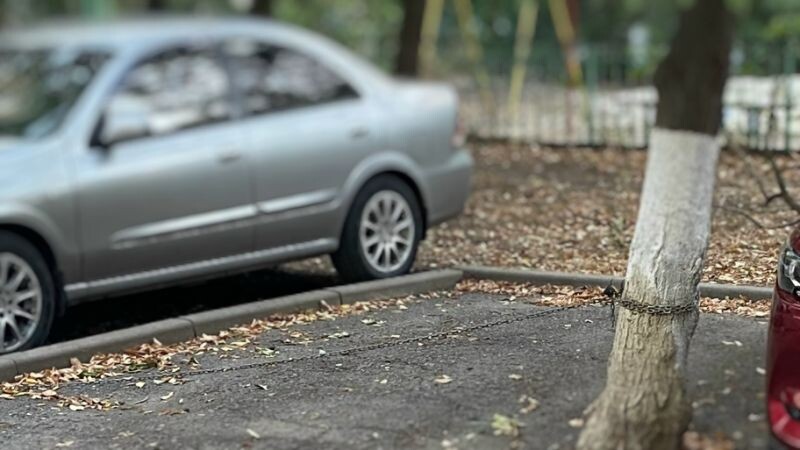 Железной цепью обезопасила место для парковки своей дочери жительница Северного. Возле дома на улице Космонавтов, 9/1 есть маленький асфальтированный участок, где жильцы паркуют свои авто. После работы особенно трудно найти пристанище для машины.