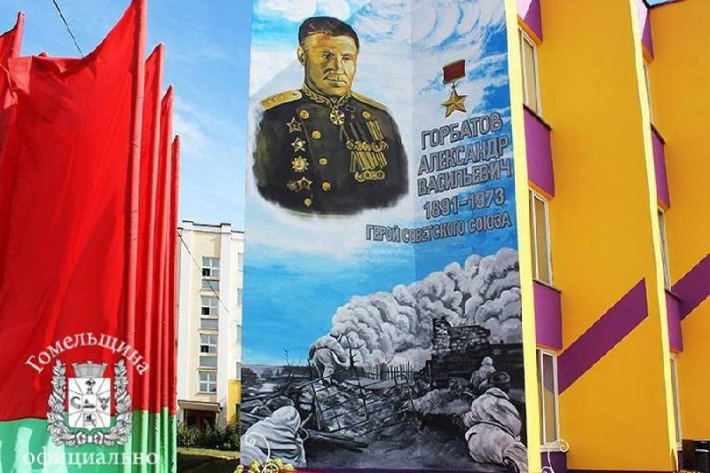В Рогачёве открыли мурал в честь Героя Советского Союза Александра Горбатова