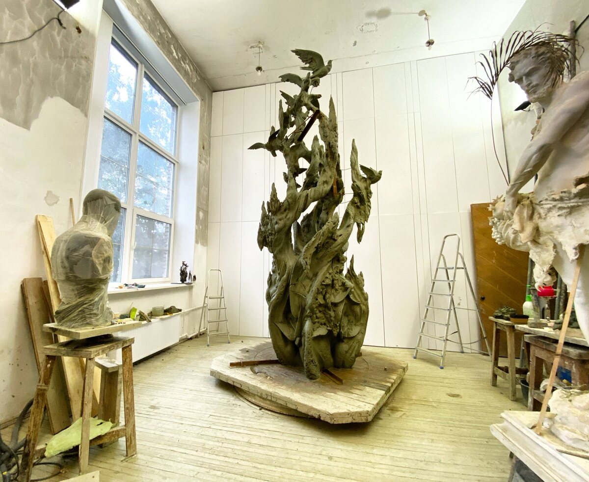 Страстный памятник со сложным силуэтом: работа над скульптурной композицией, посвященной всем погибшим от коронавирусной инфекции для сада «Милосердия» завершена