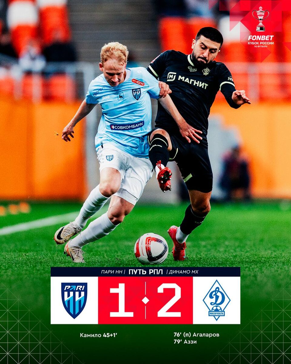 Махачкалинское «Динамо» одержало волевую победу над «Пари НН» в матче Кубка России