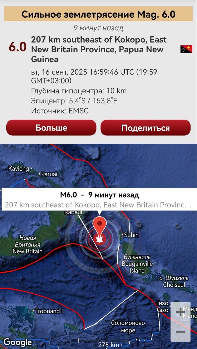 В ответ на пост Тектоническое напряжение у Новой Ирландии в итоге привело к сильному землетрясению М6.0. Энергия по зоне Соломонова моря сброшена не полностью, возможна более сильная сейсмика.